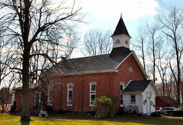 {Questionable township location. The school presently sits in Sugar Creek Township, however, the builder/district ID block states Monroe Township. Perhaps when school was built, township borders were different from present day.}